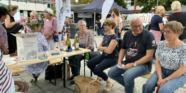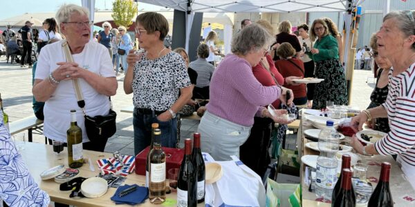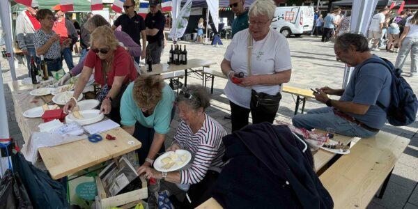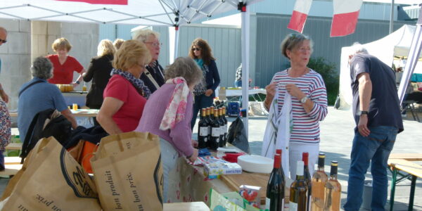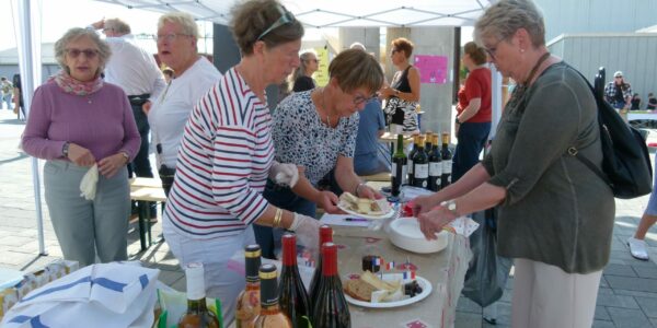 Samedi le soleil était au rendez-vous et c’est dans la bonne humeur que les bénévoles de l’AMI ont accueillis nos amis Allemands pour une dégustation de nos produits : fromages et vins !