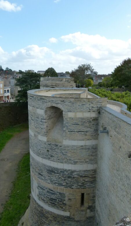 Le voyage s’est poursuivi vers l’imposant Château d’Angers, marqué par la personnalité emblématique du bon roi René, duc d’Anjou au XVe siècle. Au-delà de ses 17 tours de schiste et de tuffeau, ce château-forteresse est célèbre pour avoir été un centre culturel et politique majeur. Le roi René y a notamment développé sa cour, transformant le lieu en un foyer artistique et littéraire.