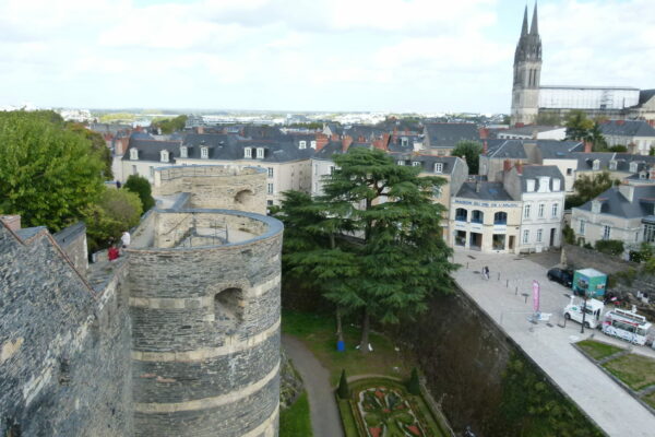 Le voyage s’est poursuivi vers l’imposant Château d’Angers, marqué par la personnalité emblématique du bon roi René, duc d’Anjou au XVe siècle. Au-delà de ses 17 tours de schiste et de tuffeau, ce château-forteresse est célèbre pour avoir été un centre culturel et politique majeur. Le roi René y a notamment développé sa cour, transformant le lieu en un foyer artistique et littéraire.