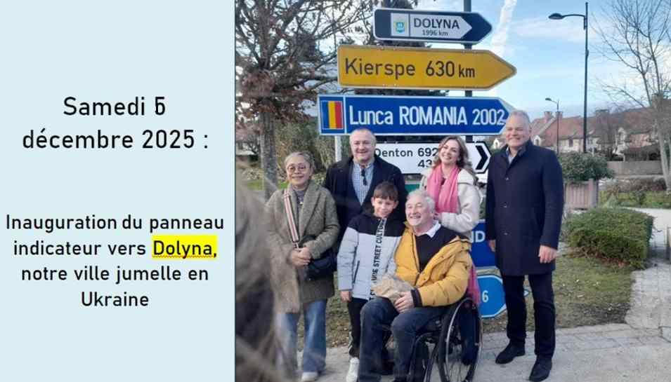 Un moment fort de ce weekend du Marché de Noël fut sans conteste l’inauguration du panneau indicateur de Dolyna, notre ville jumelle en Ukraine. Ce nouveau panneau, placé en bonne place, symbolise notre engagement continu et notre solidarité indéfectible. L’événement a réuni élus, citoyens, et bien sûr, nos chers visiteurs des villes jumelles.
