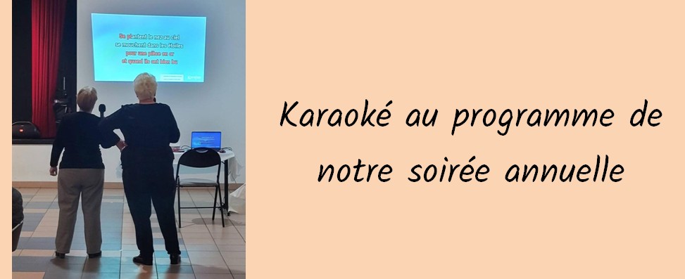 La soirée a débuté sous le signe de la gourmandise. Le buffet participatif a une nouvelle fois prouvé que nos membres ont du talent derrière les fourneaux. Après avoir flatté les papilles en dégustant les salades et autres spécialités culinaires apportées par les participants, Marie Cayla a présenté son karaoké dont elle avait choisi avec soin les chansons connues et aimées de tous.